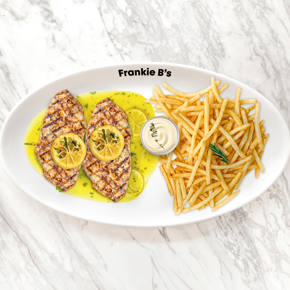 250g choice of barramundi or salmon, limone sugo, white wine, garlic-lemon butter jus, side of your choice